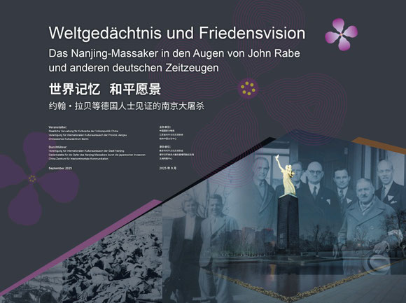 Um das Verständnis der internationalen Gemeinschaft für die historischen Tatsachen des Nanjing-Massakers zu vertiefen und die gemeinsame Idee von Frieden und Entwicklung zu vermitteln, veranstaltet das Chinesische Kulturzentrum Berlin in Zusammenarbeit mit der Gedenkstätte der Opfer des Nanjing-Massakers durch die japanische Invasionsarmee die Ausstellung „Weltgedächtnis und Friedensvision -- Das Nanjing-Massaker in den Augen von John Rabe und anderen deutschen Zeitzeugen“. Anhand historischer Dokumente, Bildmaterialien und wertvoller Exponate werden die Erfahrungen und Handlungen deutscher Zeitzeugen in Nanjing gezeigt. Die Ausstellung ruft dazu auf, die Geschichte nicht zu vergessen und den Frieden zu bewahren.