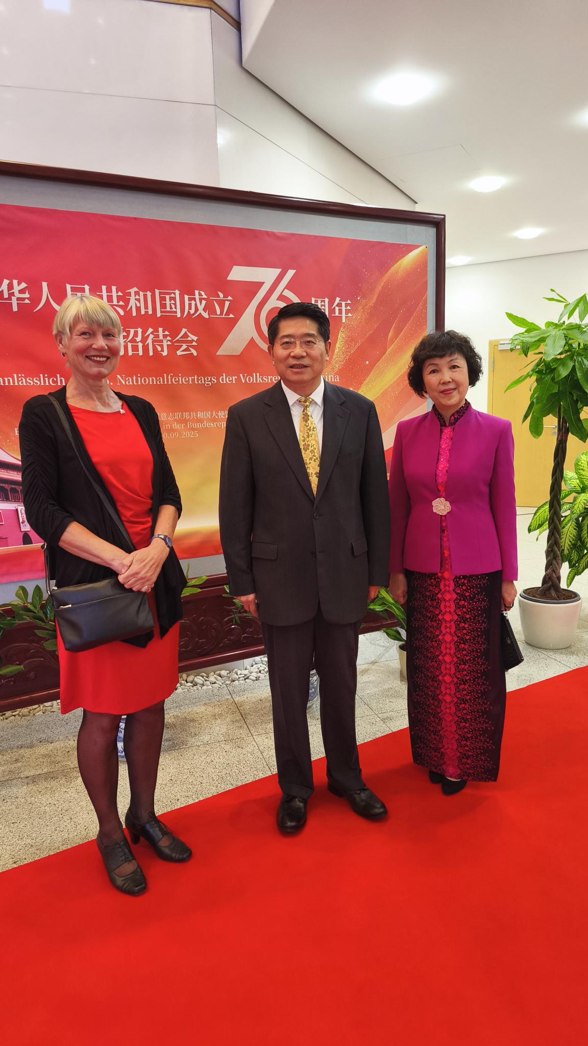 Am 30.09.25 hatten Mitglieder des Vorstandes die Ehre, den 76. Nationalfeiertag der Volksrepublik China mit unseren chinesischen Freunden und internationalen Gästen in der Botschaft zu feiern.